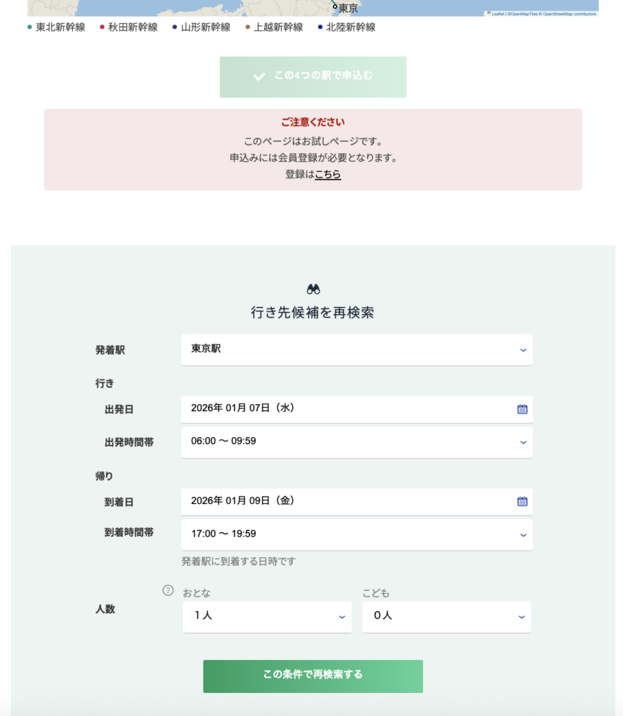 - 「途中下車」を逆手に取った戦略: 目的地の県を通る路線(新青森や秋田行きなど)を候補に混ぜることで、当選確率をグッと引き上げられる。
