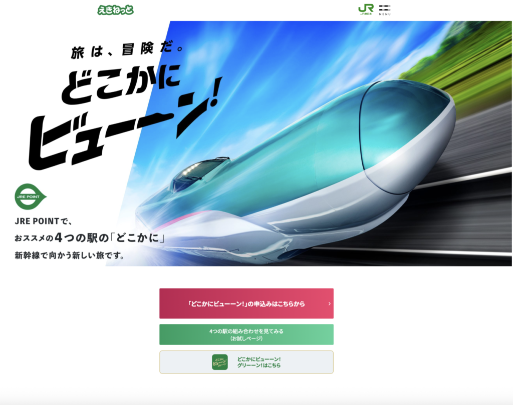 えきねっとの「どこかにビューーン!」は、わずか6,000 JRE POINTで新幹線の旅が楽しめる、まさに「新時代の旅スタイル」です。通常なら3万円以上かかる東北や秋田への往復が、ポイントだけで完結する衝撃のコスパをぜひ体感してください。