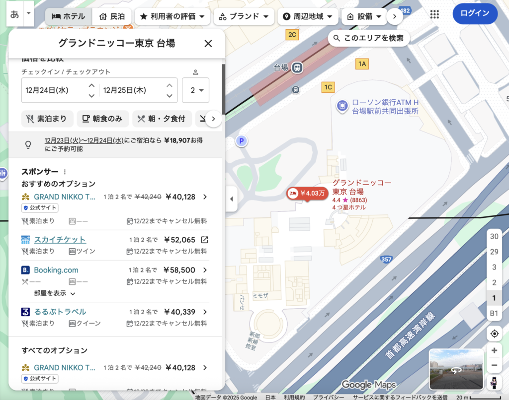 コツ④:Googleマップは最強のホテル価格比較ツール